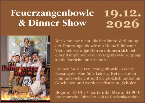 Erleben Sie die Feuerzangenbowle in einer Fassung der Komödie Leipzig, frei nach dem Film und vielleicht sind Sie plötzlich mitten im Geschehen und werden selbst zum "Schöler".