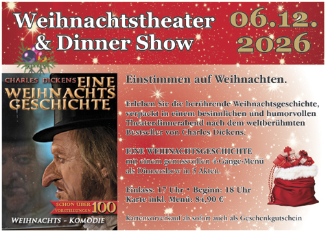 Theaterdinnerabend nach dem weltberühmten Bestseller von Charles Dickens.
